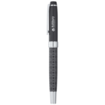 Exclusive The Brass Co® design. Inspired by on-trend bold prints, the Statement roller ball features a matte black silhouette starkly contrasted by a laser etched geometric print in shiny chrome. Shiny chrome accents complete the look. Pen includes premium blue German roller ball ink cartridge.