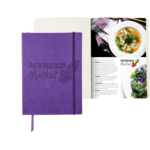 Elevate your brand with this semi custom bound journal. Features a built in elastic closure, ribbon page marker, document pocket on back cover and 80 sheets of cream lined paper. Customizable full color graphic page insert and oversized blind deboss decoration included in pricing.